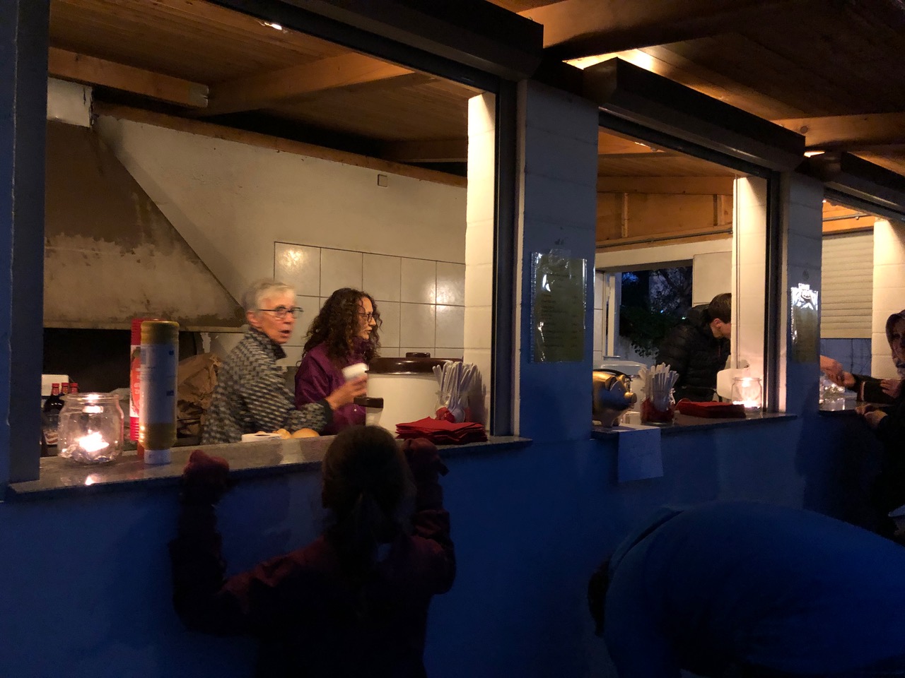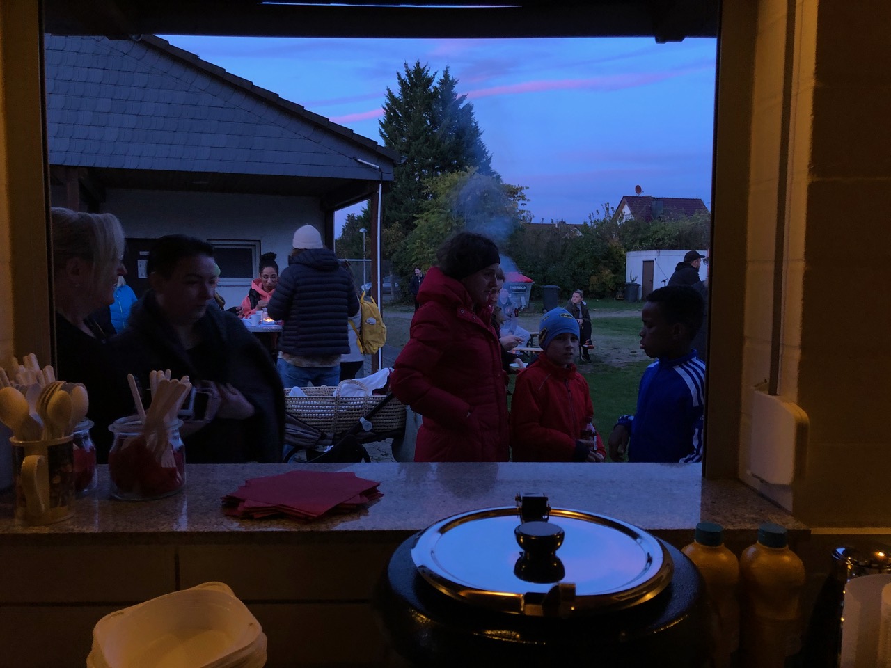 Angeboten wurden: hausgemachte Kartoffelsuppe mit und ohne Würstchen sowie die bekannten Folienkartoffeln mit verschiedenen leckeren gespendeten Dips.